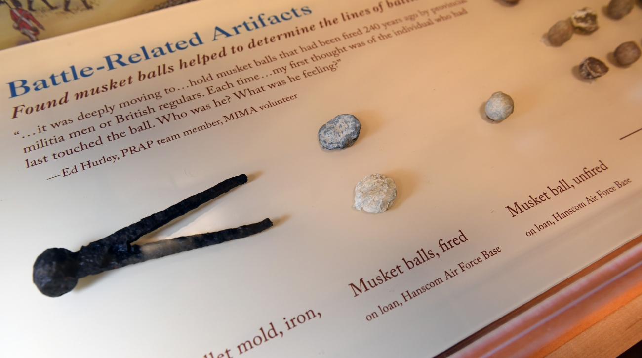 Items on loan from Hanscom Air Force Base in Massachusetts are part of a Revolutionary War exhibit at the Minute Man National Park. The exhibit includes artifacts from archeological surveys conducted more than 10 years ago on base.