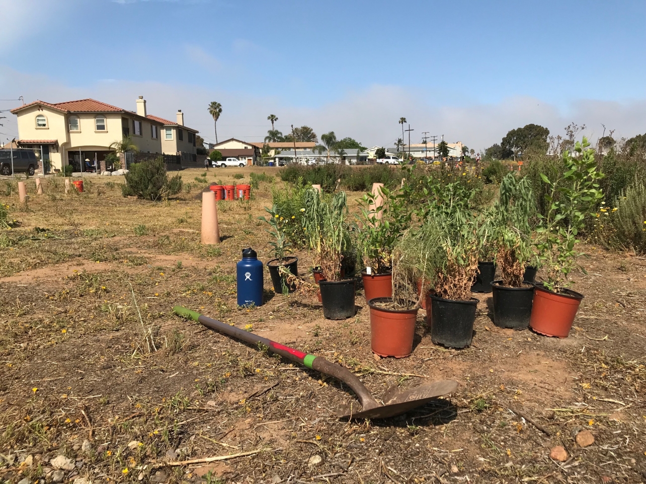 Native plants in pots at the Habitat Heroes restoration site in San Diego Bay National Wildlife Refuge
