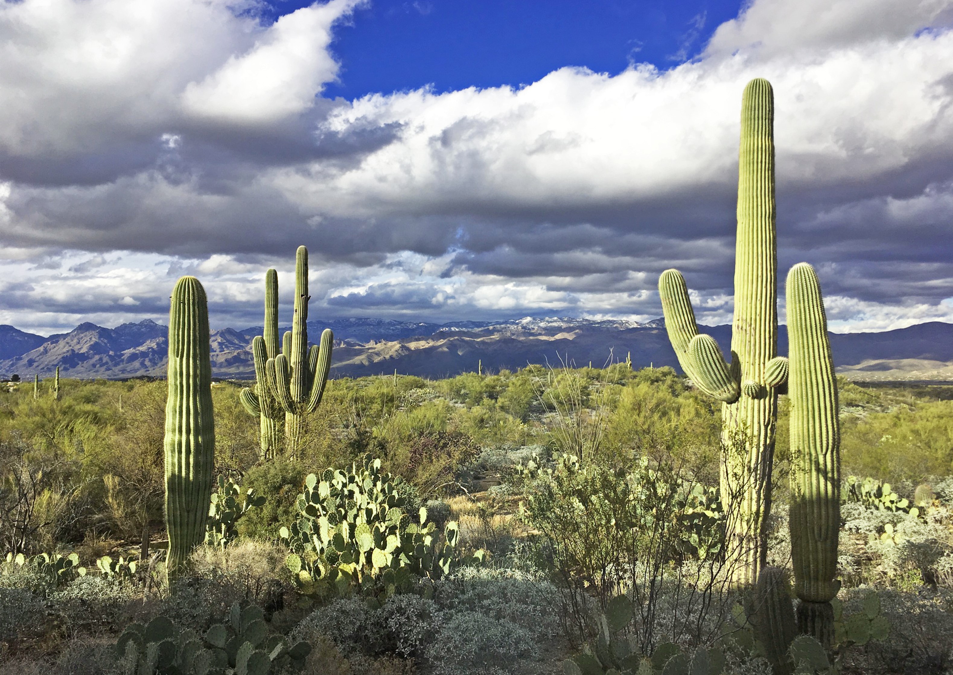 Cacti and shrubs typical of the Sonoran desert in Saguaro National Park.