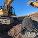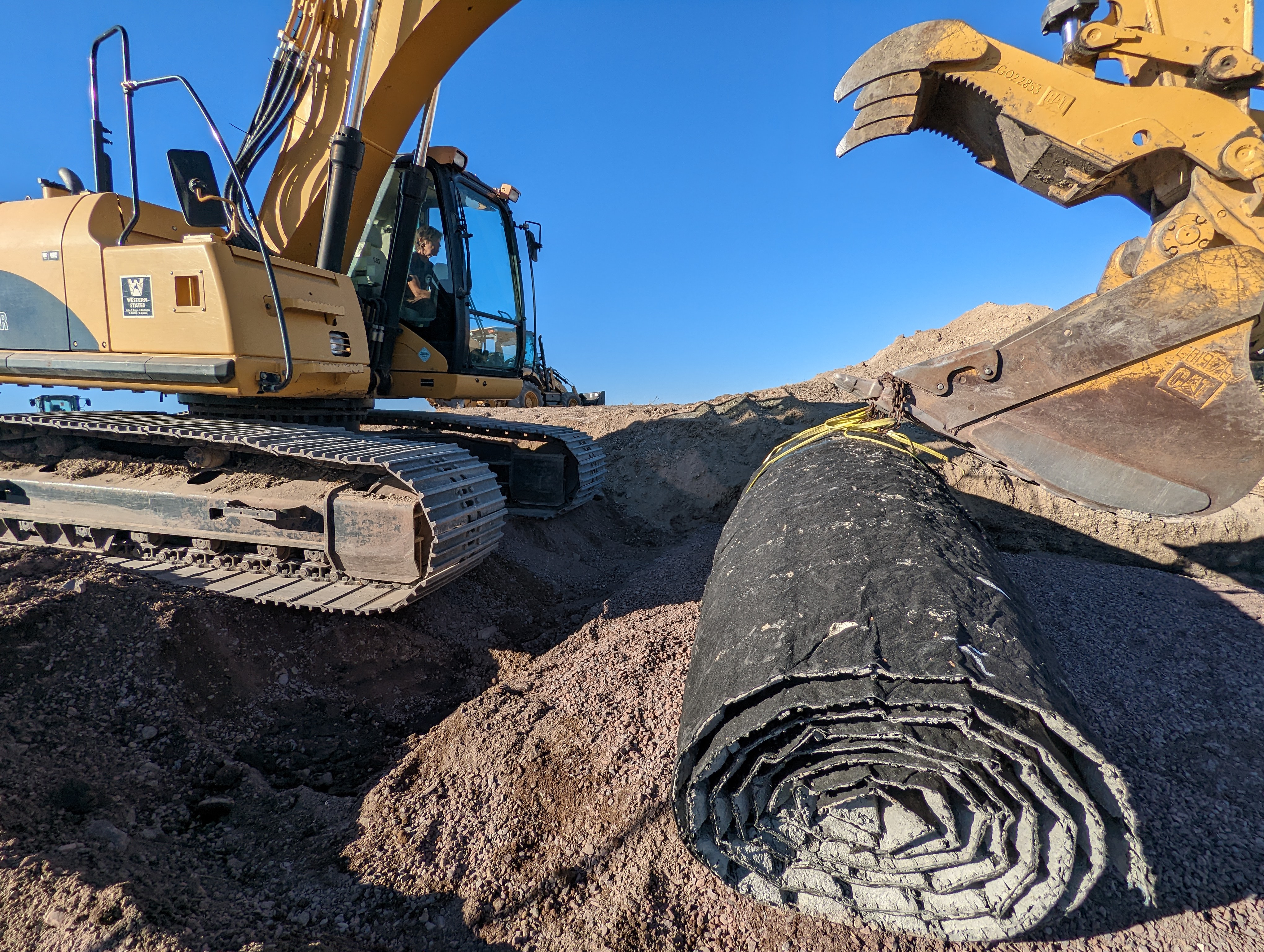 A volunteer uses a piece of heavy equipment to place a new mat on a boat ramp at Malheur National Wildlife Refuge.