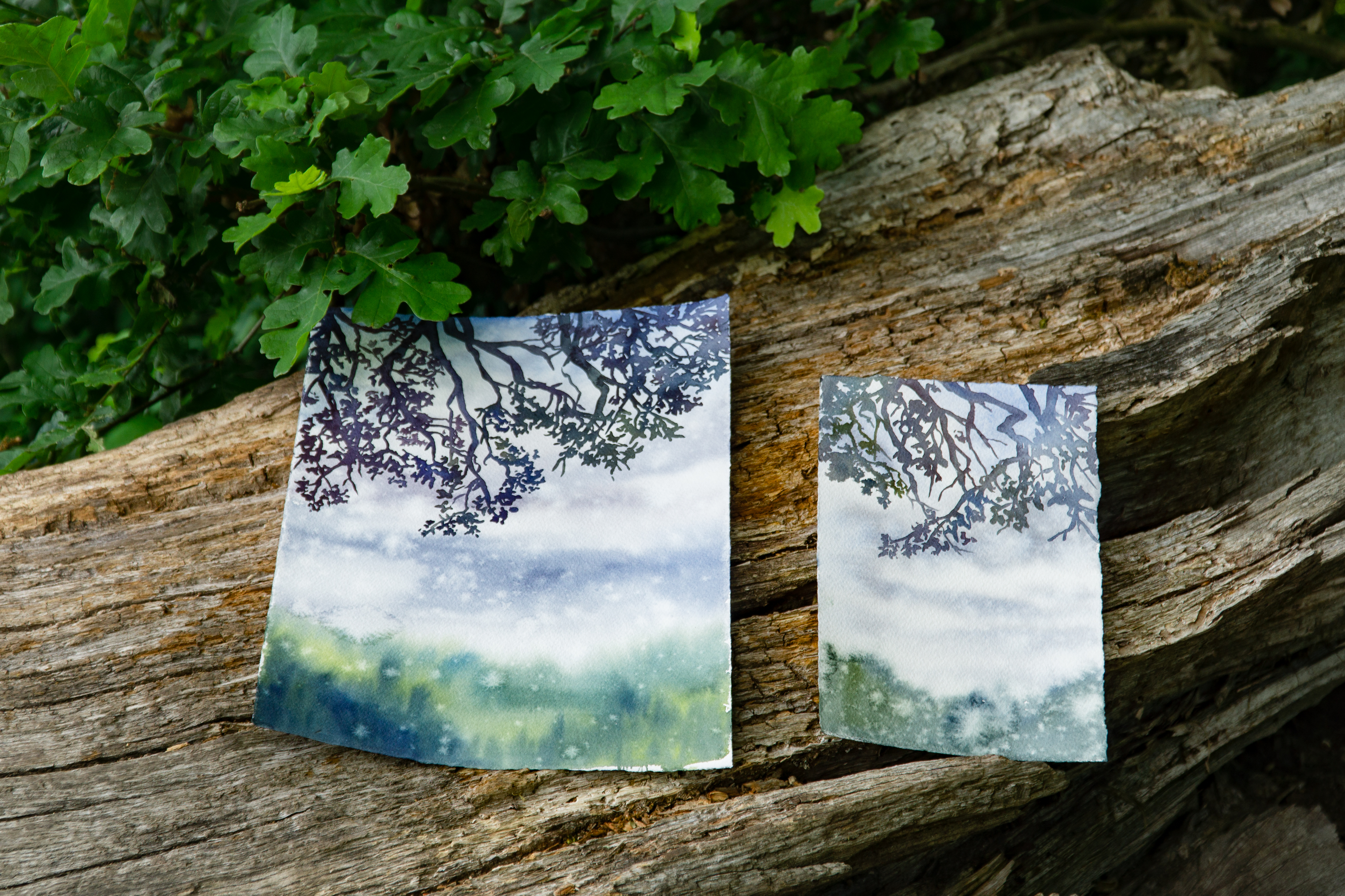 Oak paintings under rain
