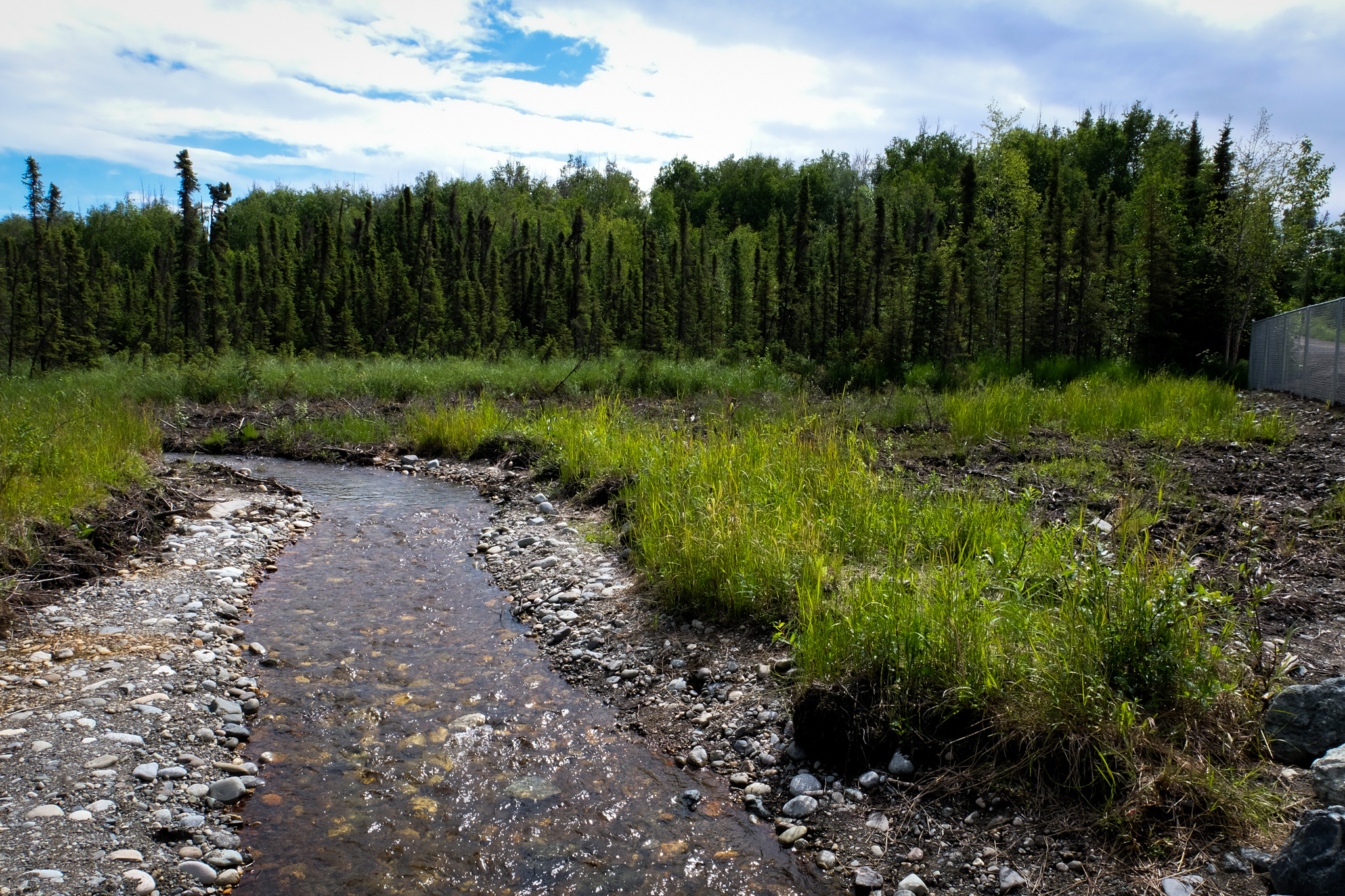 Restored streambanks near a new culvert in O'Brien Creek. Christian Thorsberg/USFWS