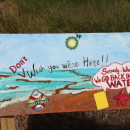 Oil spill protest sign