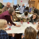 Meeting participants studied maps of the watershed in small groups and discuss areas where organizations might work together on projects that offer multiple benefits, from recreation to restoration to education.