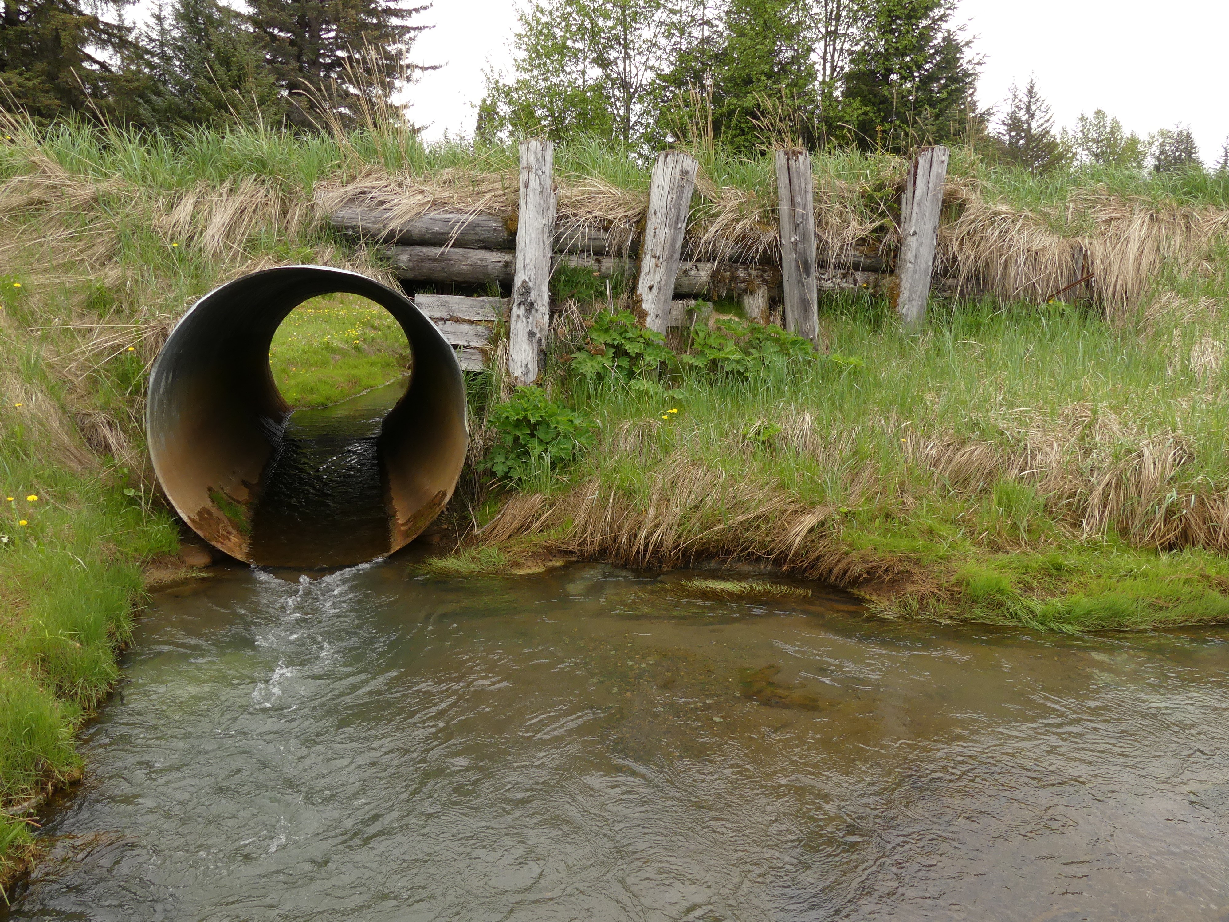 A perched culvert that's undersized passes Harry Hall Creek under a road in Gustavus, Alaska.