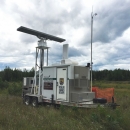 Avian radar unit with scanners to record nighttime migration. An acoustic monitor is also attached to record bat calls.