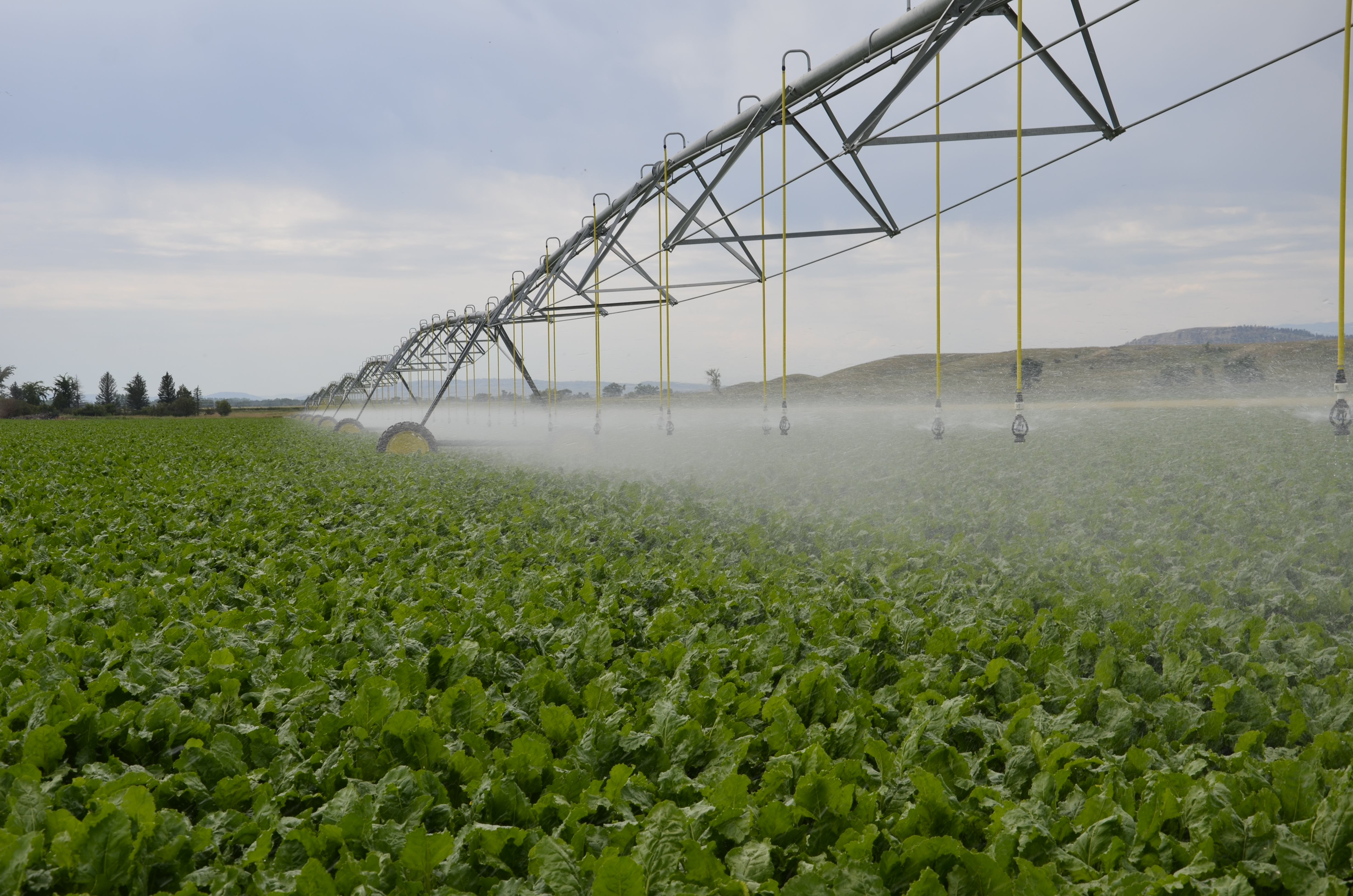 No-till sugarbeets planted into barley stubble under center pivot irrigation on Greg Schlemmer's farm. The planter is equipped with Yetter floating row cleaners and a combination of rubber closing wheels and Schlagle closing wheels. Greg farms between Edgar and Fromberg, MT. Carbon County, MT. July 2018.