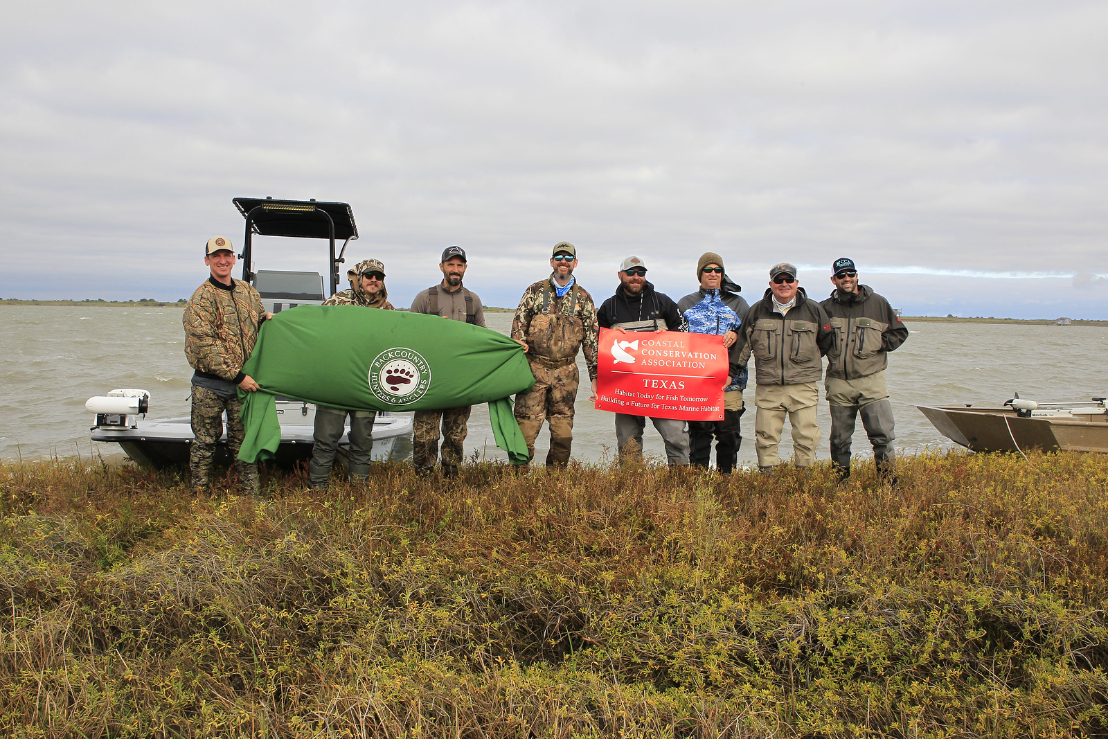 Members of the Backcountry Hunters & Anglers and the Coastal Conservation Association plant cordgrass at San Bernard National Wildlife Refuge in Texas.