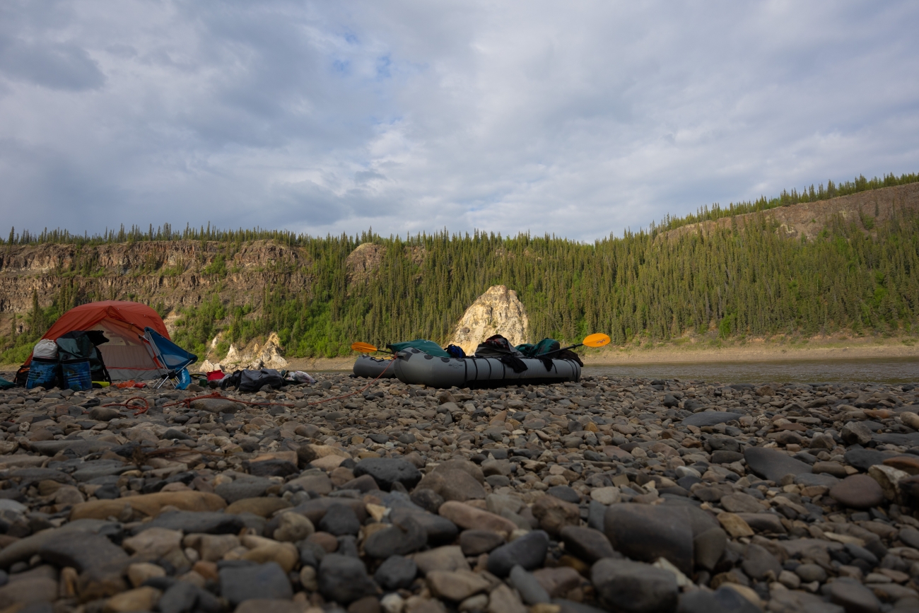 A camp on a gravel bar of the Porcupine River in Arctic National Wildlife Refuge.
