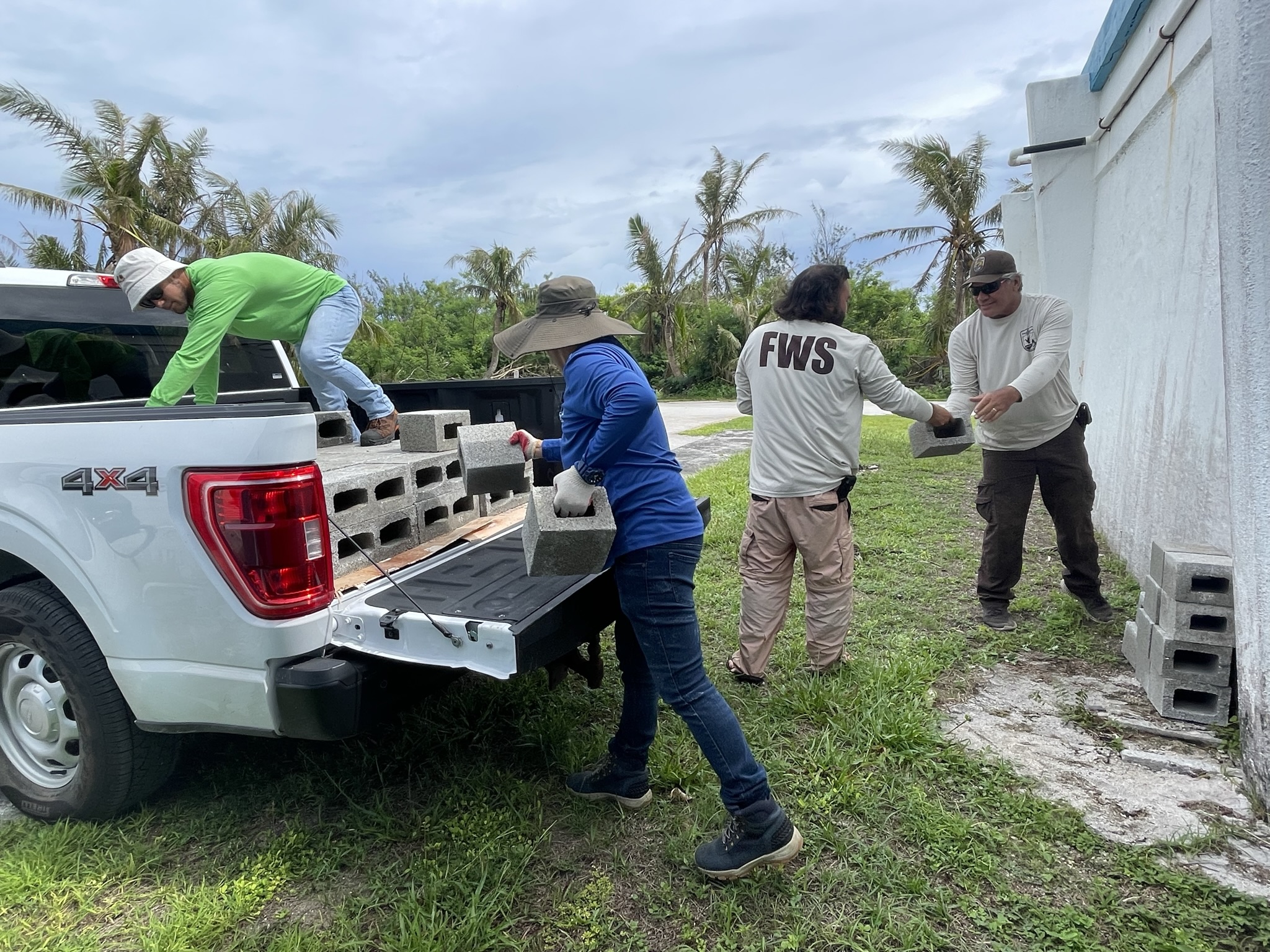 Staff and volunteers gather materials for post-typhoon garden maintenance at Guam National Wildlife Refuge.