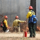 Three prescribed fire staff monitoring the status of a prescribed burn at Felsenthal NWR.