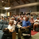 An attentive public listens to a presentation about the Red Wolf Non-essential Experimental Population at the Roanoke Island Festival Park, Indoor Theater in Manteo, North Carolina., on July 10, 2018. Photo by Lilibeth Serrano, Public Affairs Specialist.