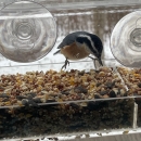 red-breasted nuthatch at window feeder