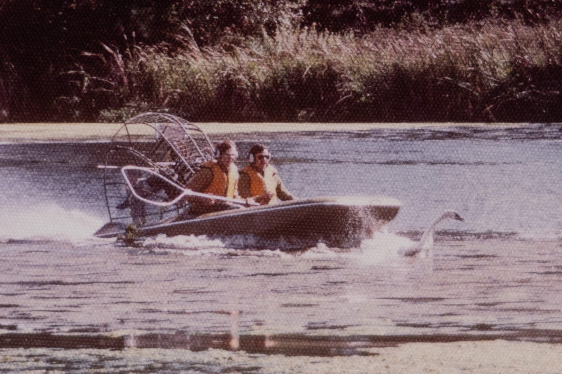 Refuge staff capture a Trumpeter Swan for Banding in 1978