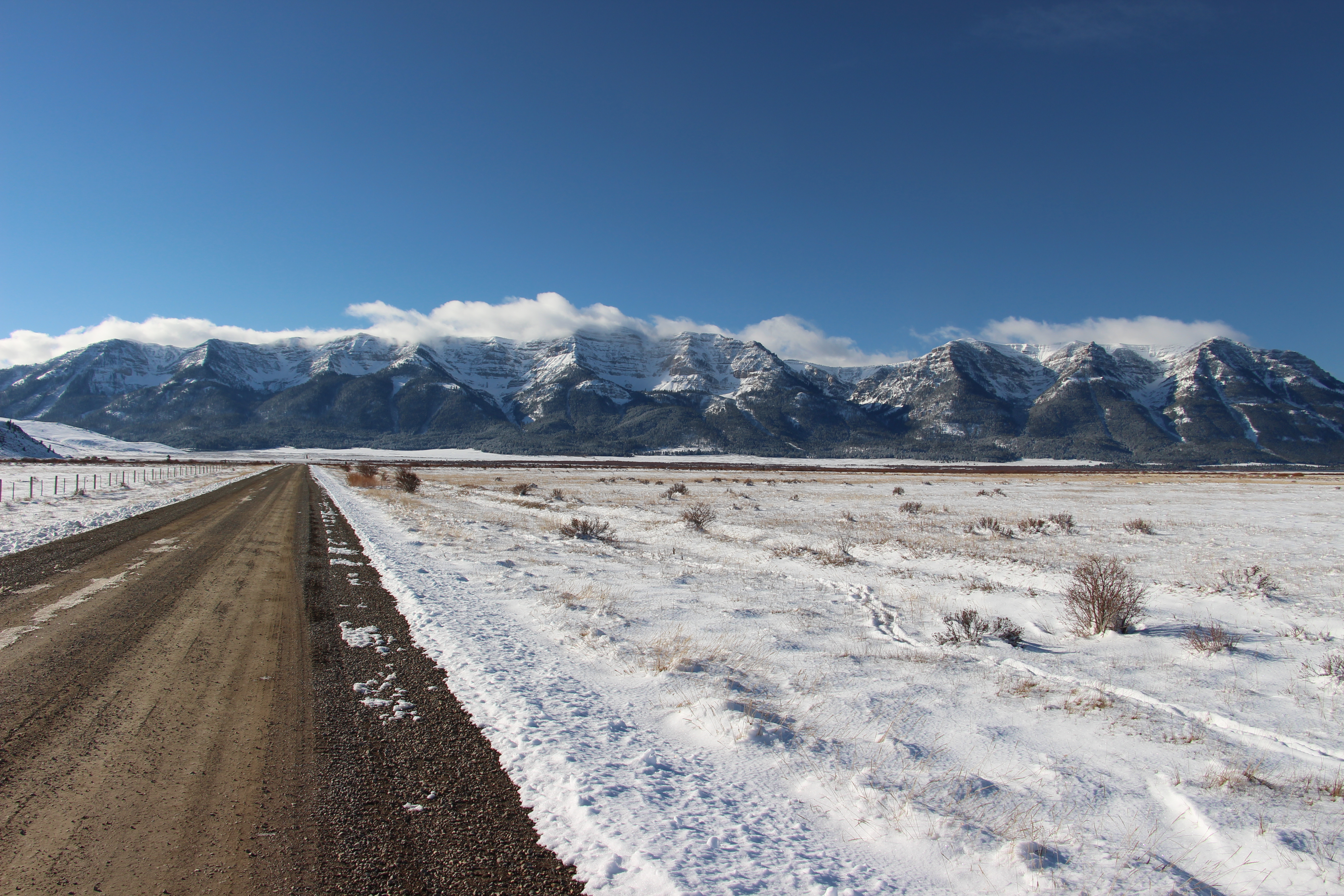 Eight miles east of Red Rock Lakes National Wildlife Refuge headquarters on the Centennial Valley Road provides a splendid view of the the Refuge ahead and to the right, and the Centennial Mountains. Photo by Cortez/USFWS
