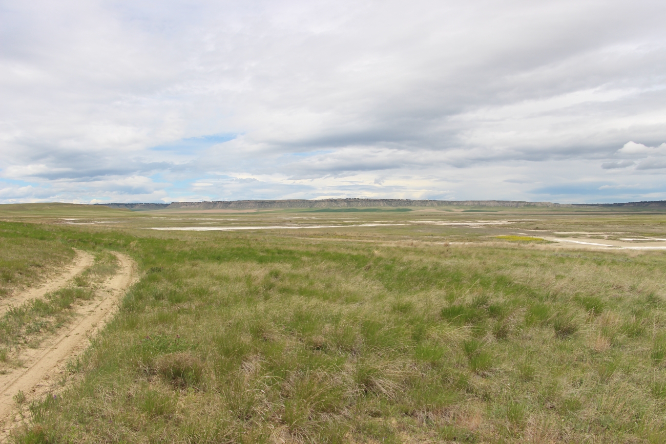 A dirt two-track road running through Hailstone Waterfowl Production Area ends 3/4 of a mile from Hailstone National Wildlife Refuge and requires a walk from there to access the rest of the WPA and the Refuge. Photo by Cortez Rohr/USFWS.