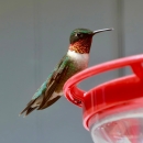 Ruby-throated hummingbird at feeder