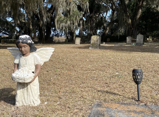 Gould Cemetery sits precariously close to the encroaching salt marsh at Harris Neck National Wildlife Refuge.