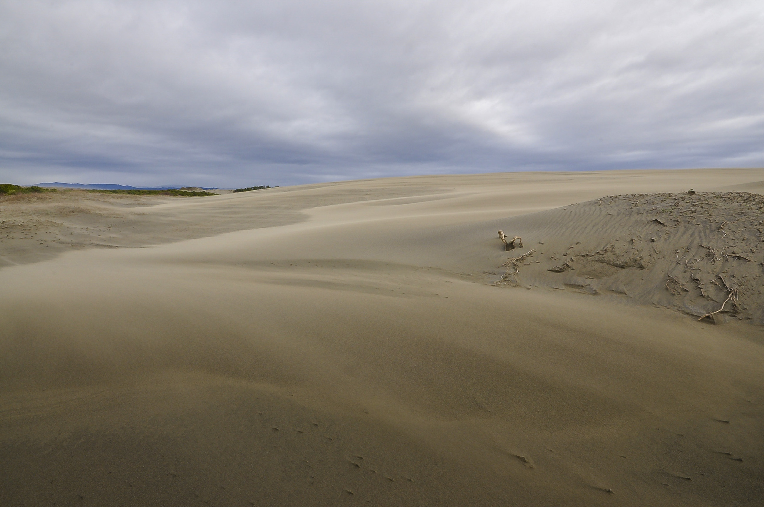 Large expanses of moving dunes are believed to have been set in motion during the last megaquake on the Cascadia subduction zone in 1700. These dunes are juxtaposed with stabilized forested dunes. Wildlife leave the forest at night to hunt, leaving their tracks to be seen by day. Credit: Andrea Pickart/USFWS