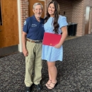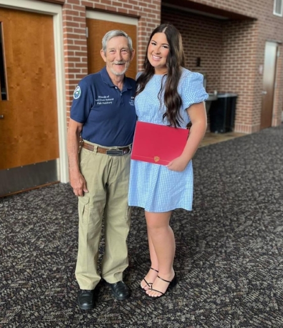 Friends of Wolf Creek National Fish Hatchery, Inc. President James Clark presents Baylee Hart with a 1,000 scholarship.