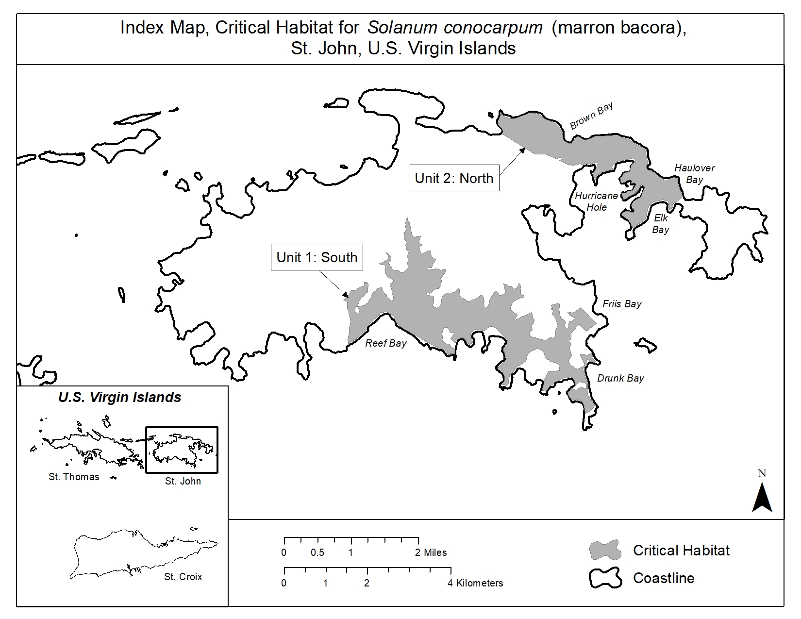 Map of final critical habitat for marron bacora; USFWS - 2022.