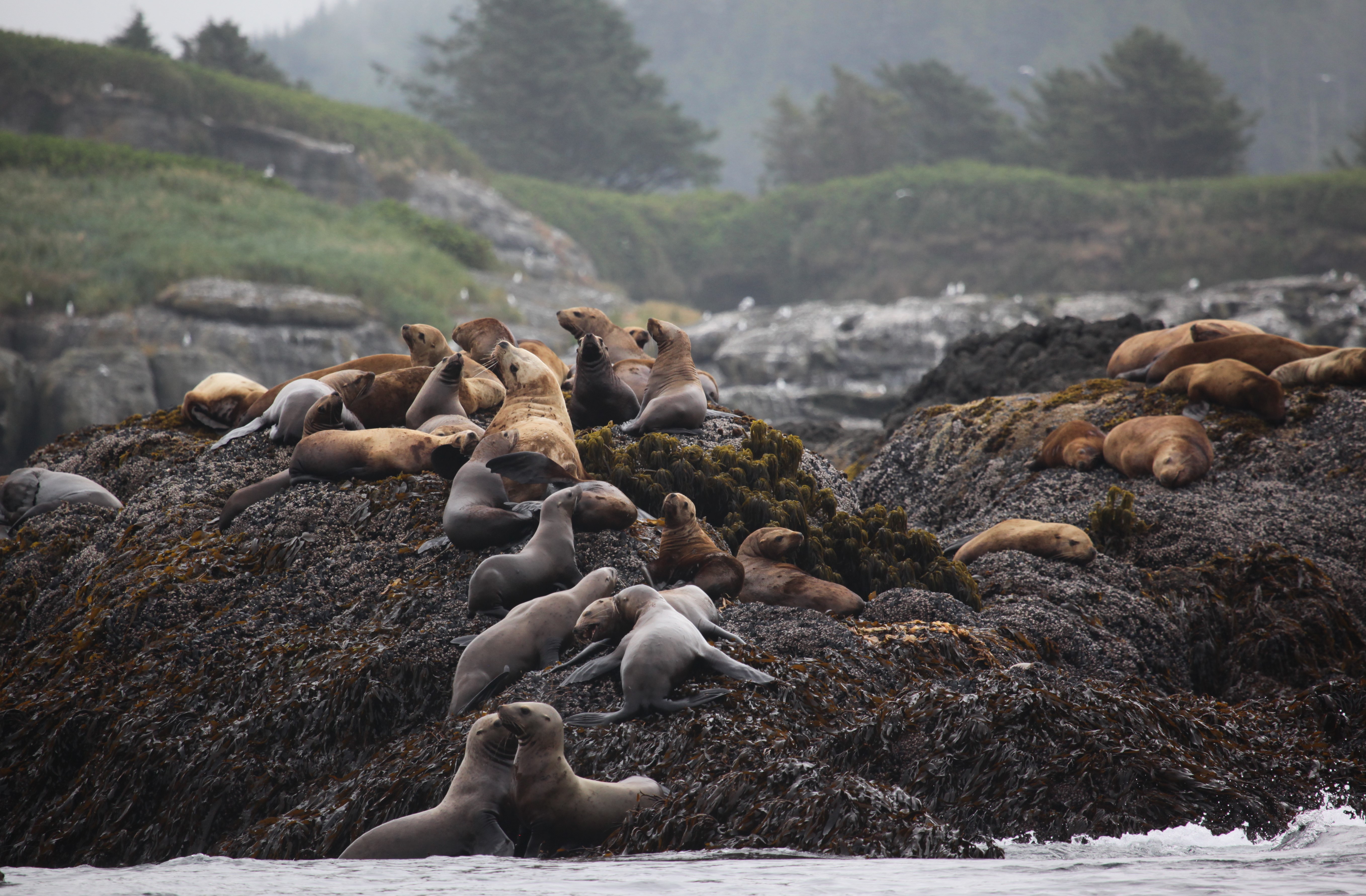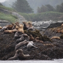 Sea Lions on a Rocky Island
