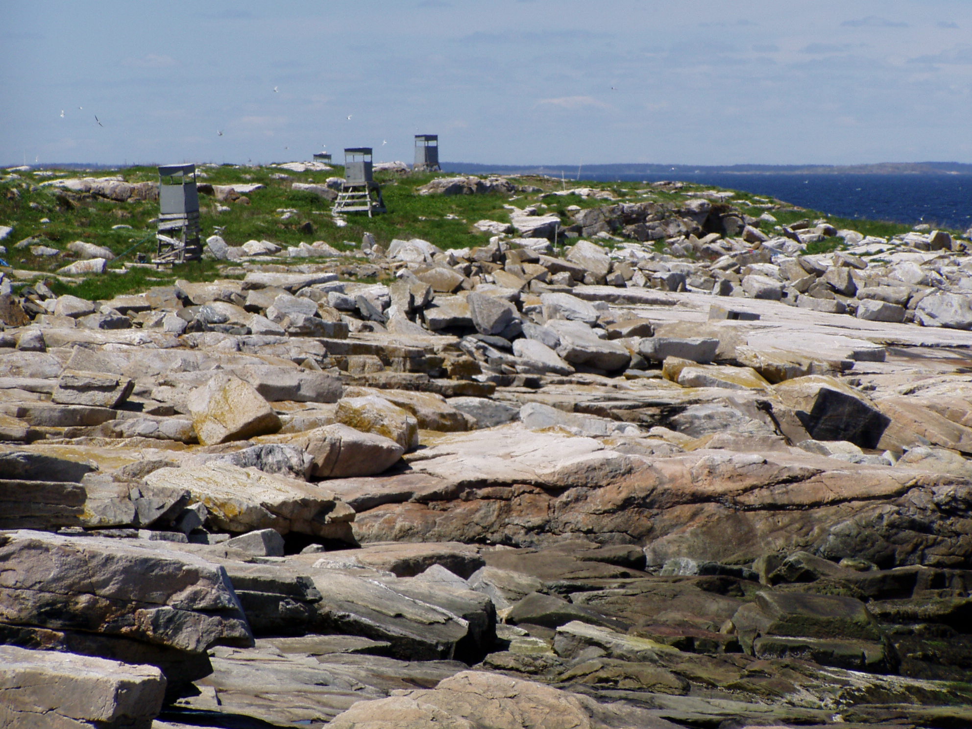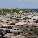 Seal Island's rocky shore and observation blinds