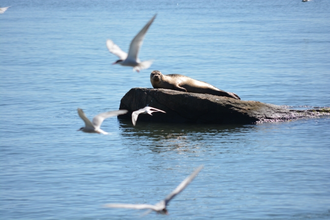A-seal-resting-on-a-rock-with-terns-flying-on-Falkner-Island.jpg
