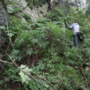 Perched on a steep section of Whitetop Mountain, Sue Cameron searches for spruce-fir moss spiders.