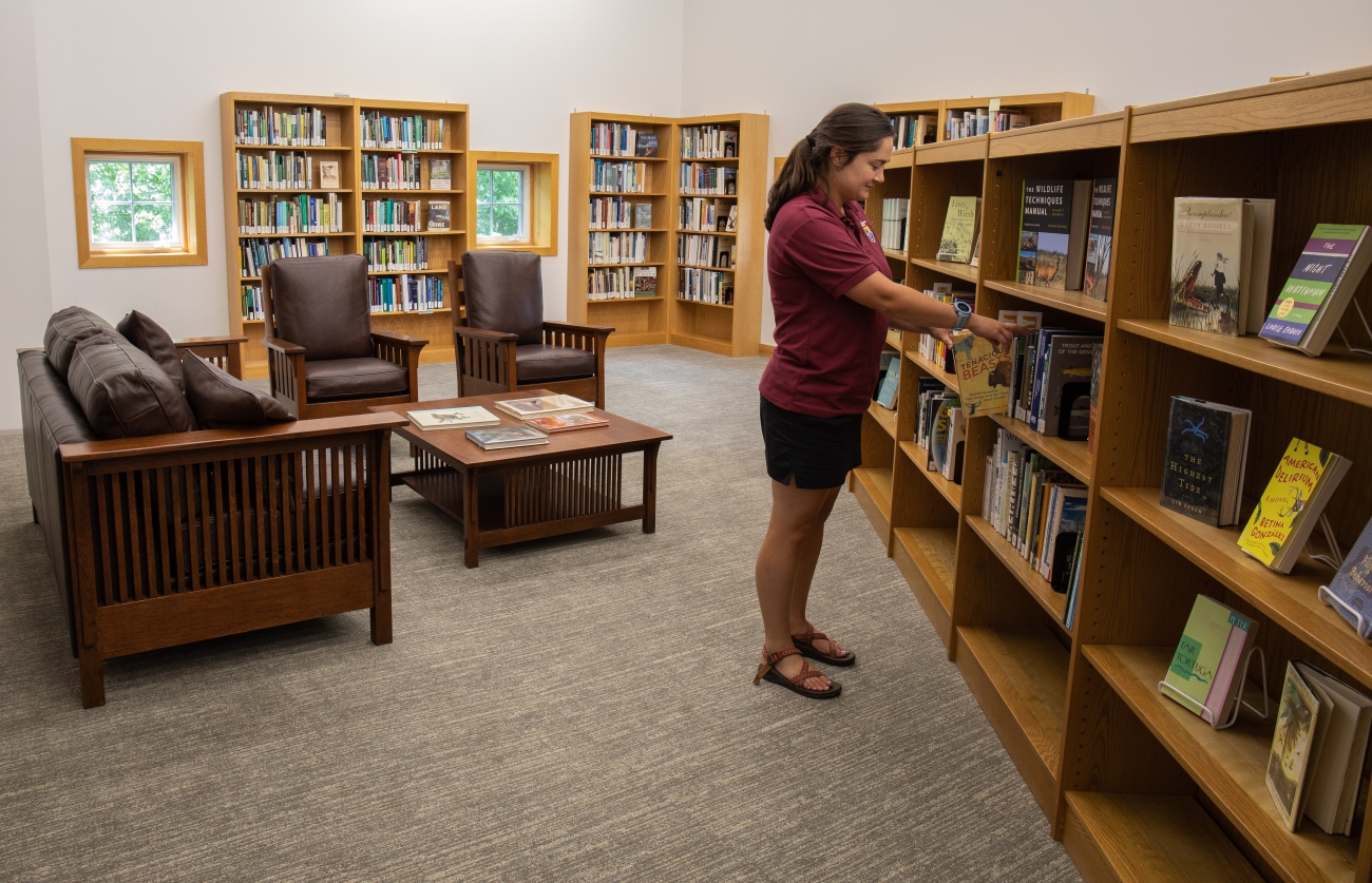 Selecting a book at the U.S. Fish and Wildlife Service Library