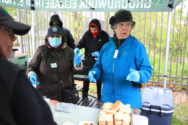 Serving food to Elizabeth Mother's Day event attendees