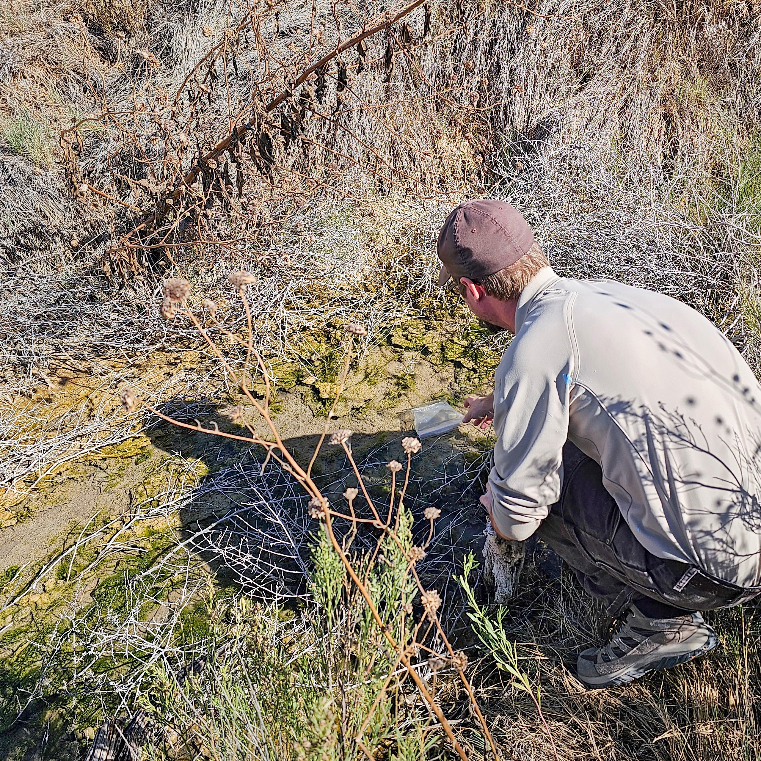 At Bitter Lake National Wildlife Refuge in New Mexico, FWS biologist Carl Jacobsen acclimates springsnails to the water temperatures before releasing them in Bitter Creek.