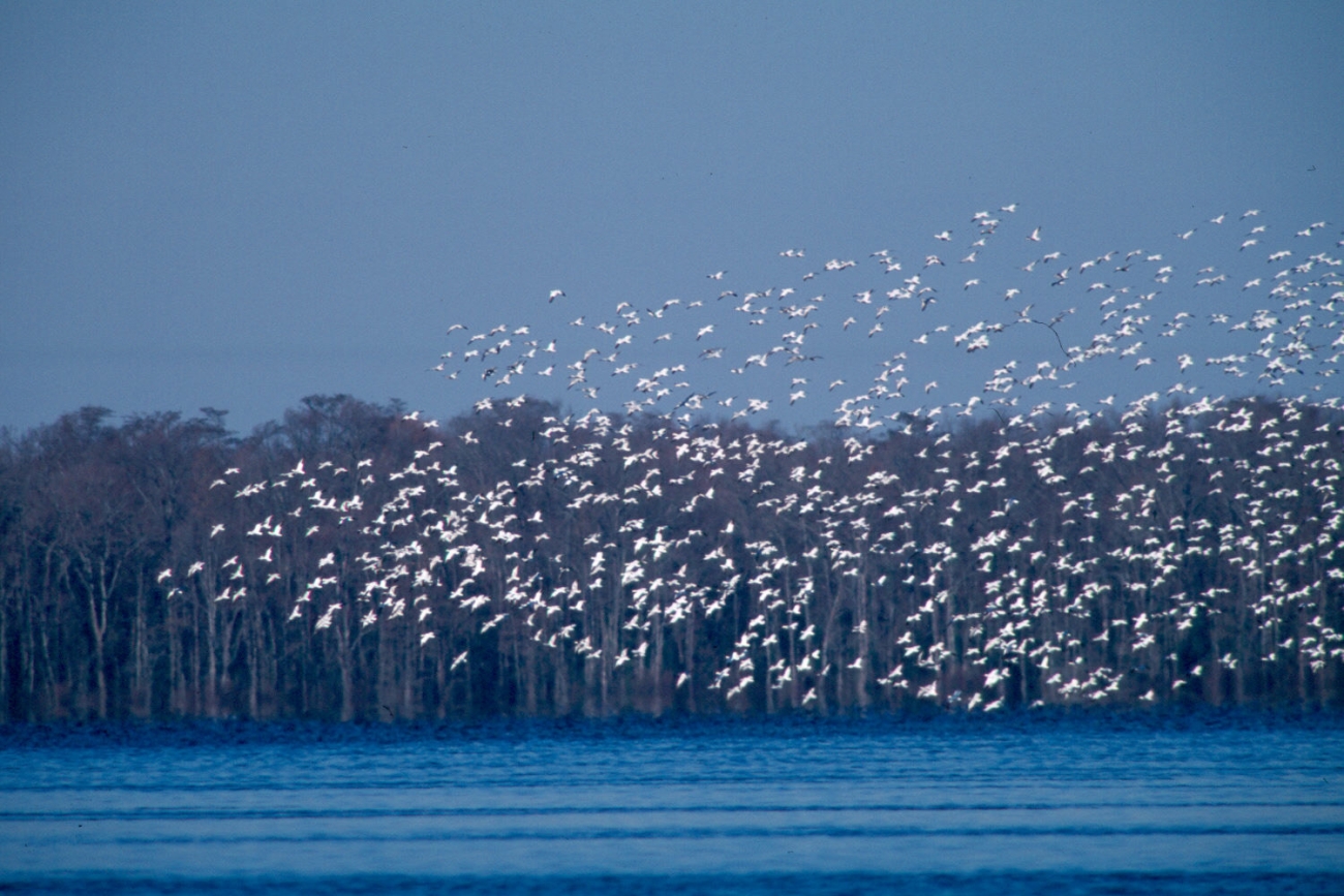 Snow Geese flying over Lake Drummond