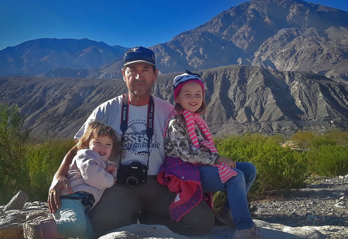 Spike Jackson, with his daughters, Coco Neytiri Jackson, 6, and Arrow Rose Jackson, 2, during the November 2018 Saline Valley monarch butterfly survey.