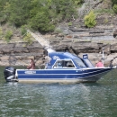 One of the seven striper guide boats that participated in Wolf Creek National Fish Hatchery's 2022 Wounded Warrior Fishing Derby trying their luck on Lake Cumberland during the event.