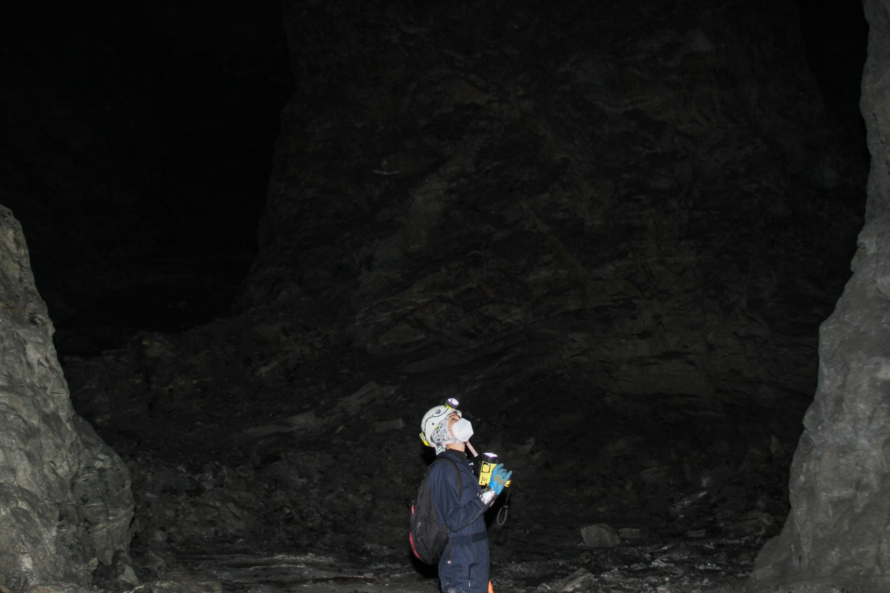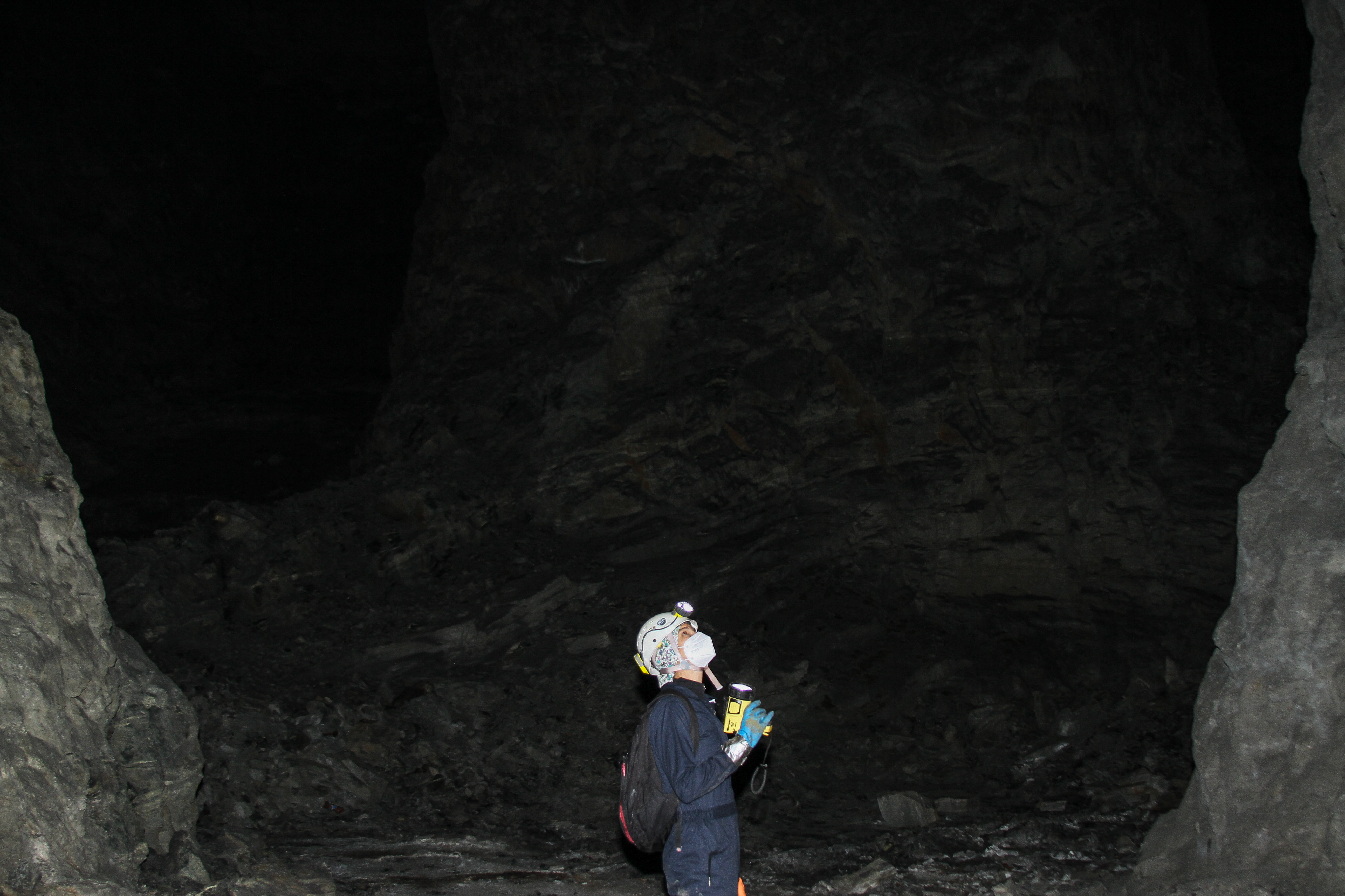 After being worked for decades, an abandoned iron mine in western North Carolina now serves as an artificial cave for bats. Service biologist Sue Cameron scans the mine ceiling for bats as part of a biannual survey of bats in the cave.