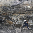 Sue Cameron works along the edge of an abandoned mine, searching for bats