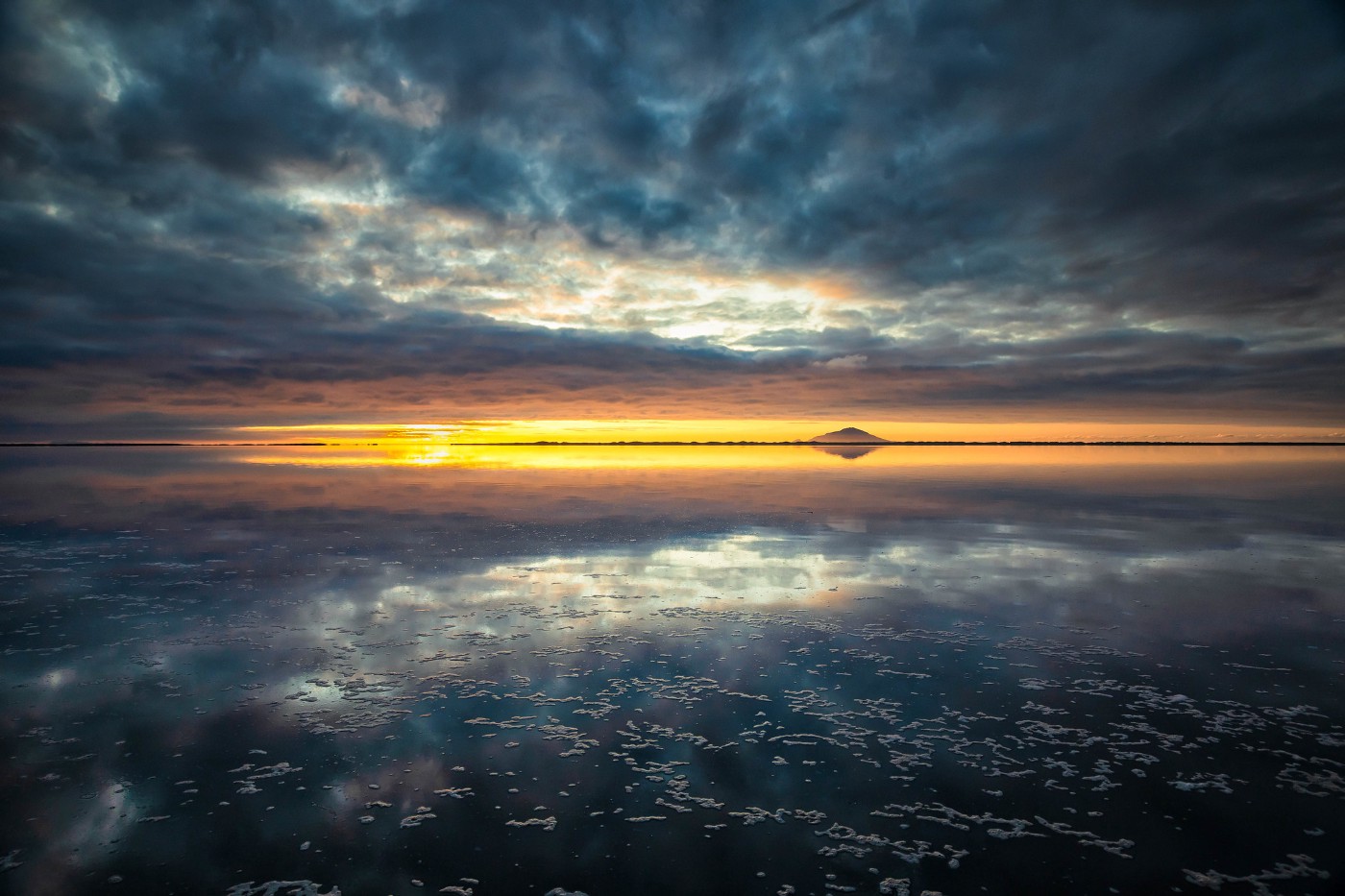 Sunset over Izembek Lagoon at Izembek National Wildlife Refuge in Alaska.