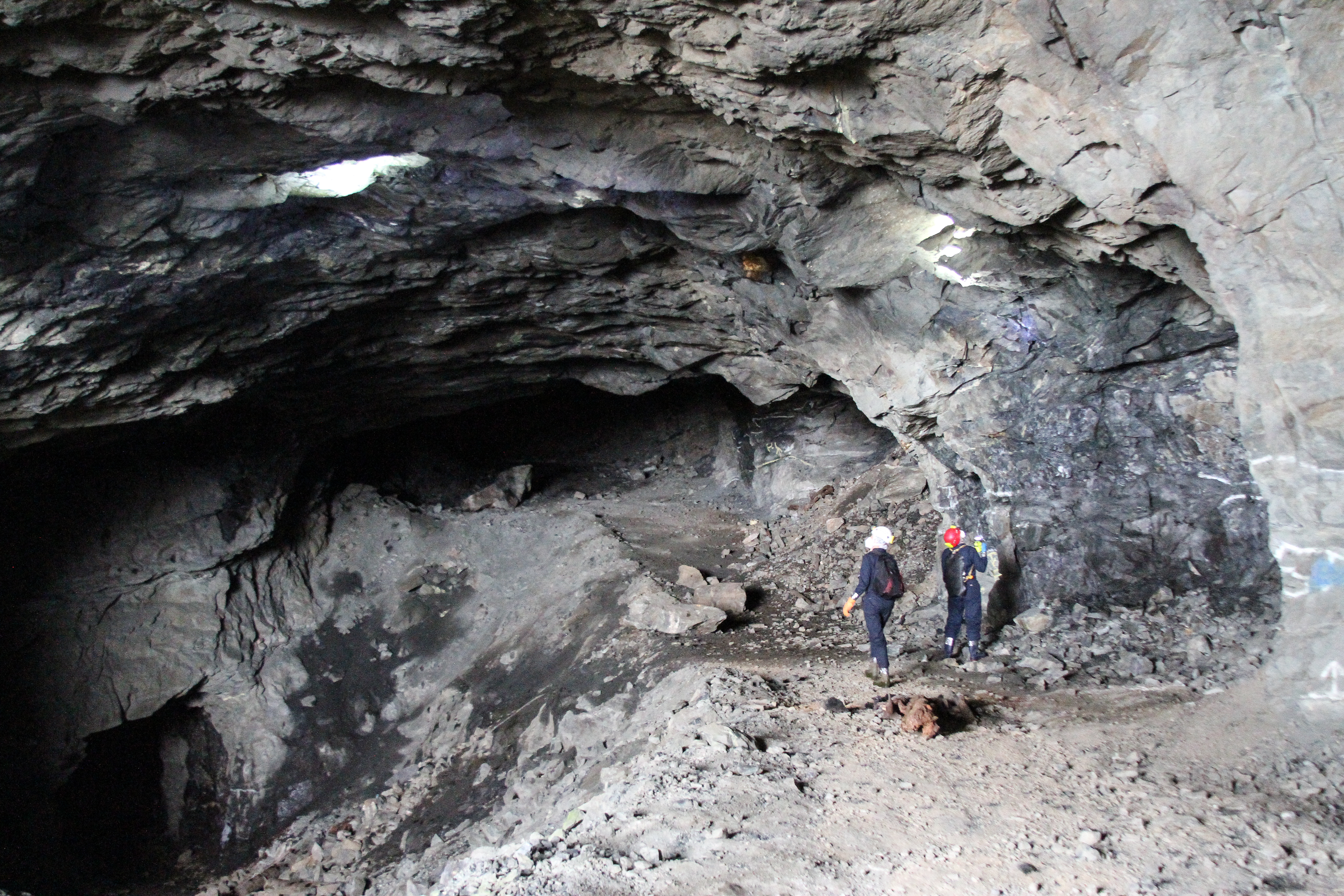 Asheville Field Office biologist Sue Cameron (L) joins N.C. Wildlife Resources Commission biologist Katherine Etchison for a bat survey in an abandoned Appalachian iron mine.
