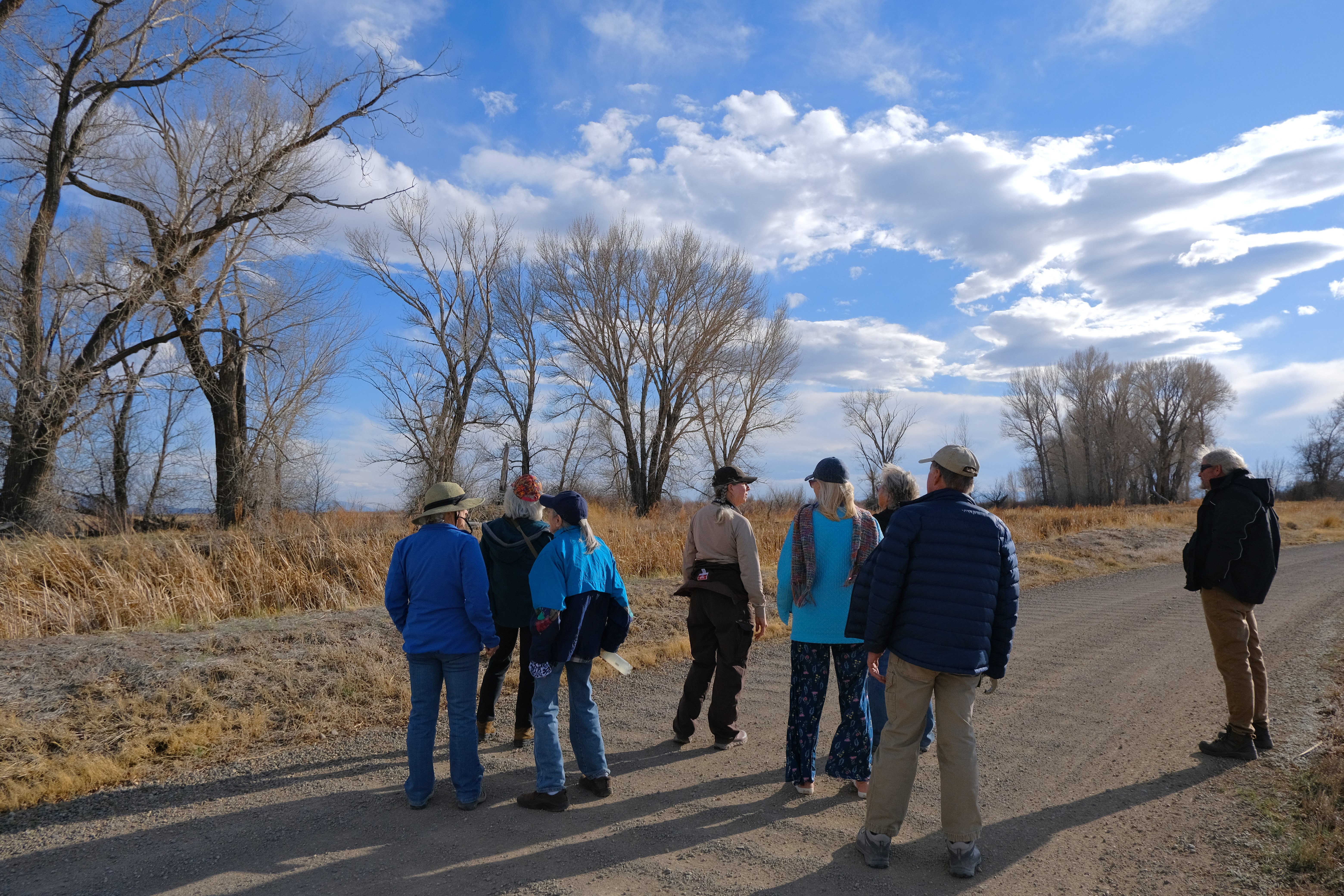 Suzanne Beauchaine and locals gather on the wildlife walk.