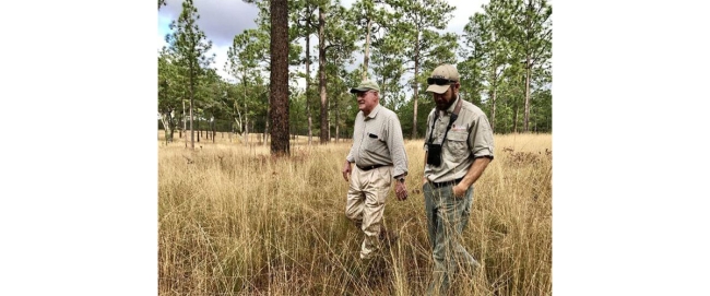 Tarver and Joe Burnam, a biologist with the Georgia Department of Natural Resources, check on cavities where the RCWs nest. Burnam has worked with Tarver to establish birds on the tract.