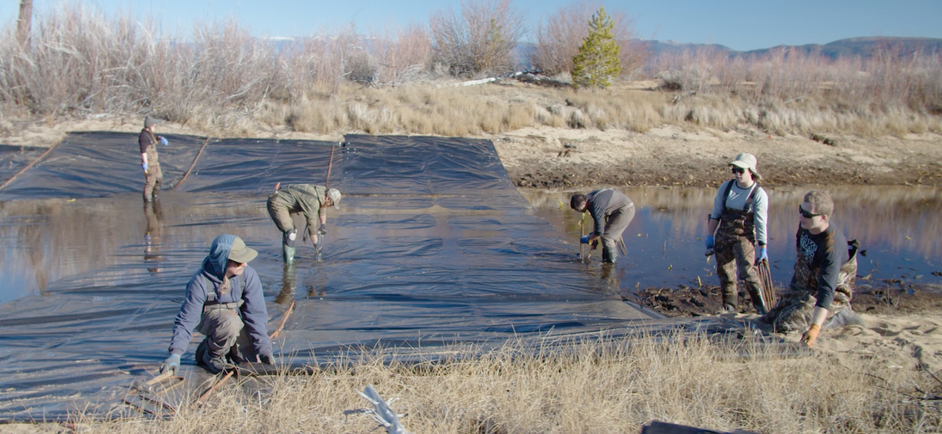 A field crew working to install benthic barriers in Taylor and Tallac creeks.