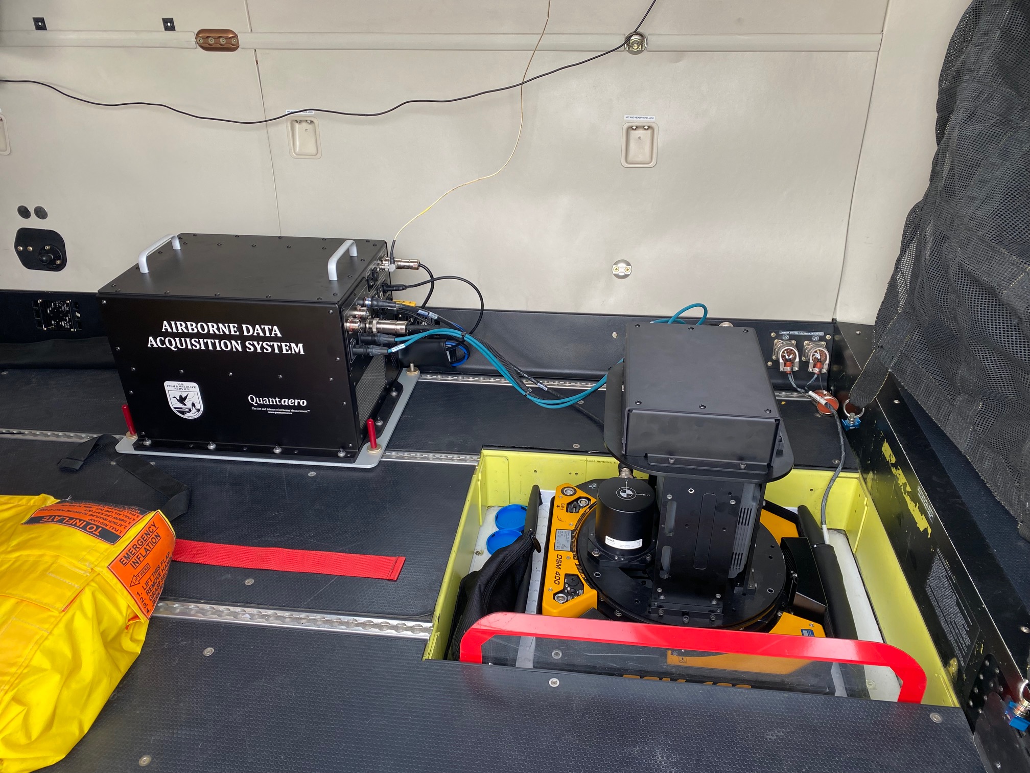 This thermal sensor mount and head (right) leads to computing system that stores and processes imagery in-flight (left). This picture was from a system in a USFWS Kodiak airplane.