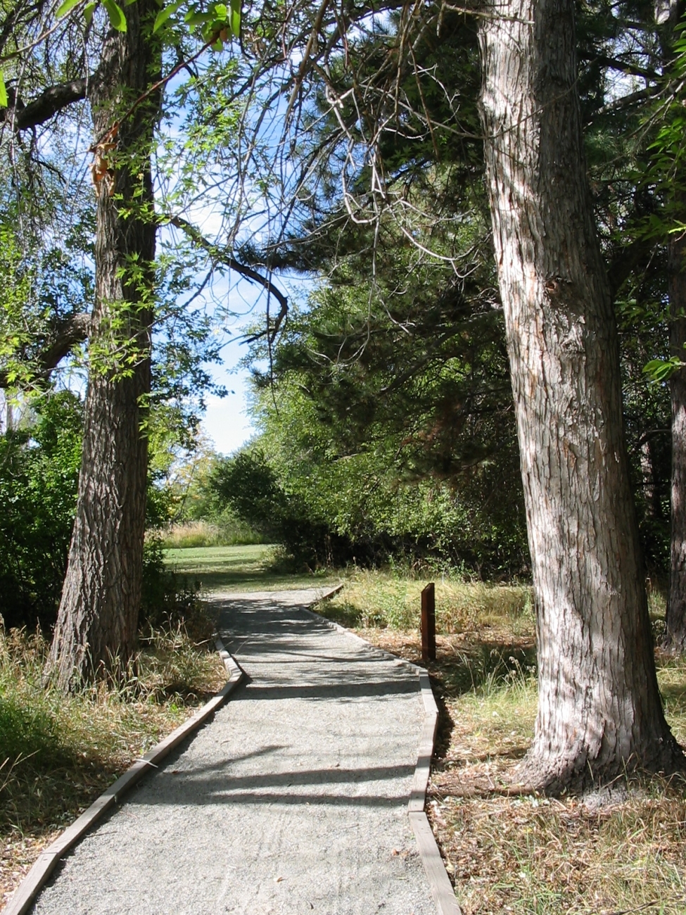 A trail meanders through trees at Two Ponds National Wildlife Refuge in Colorado.