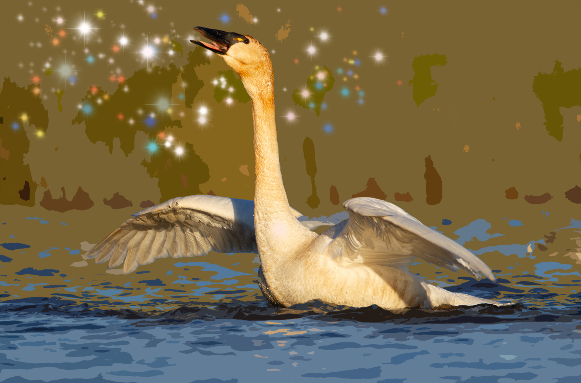 If you visit McNary National Wildlife Refuge in November, you’ll likely see large flocks of long-necked tundra swans foraging in the seasonal wetlands. Tundra swans migrate long distance, flying from their summer breeding grounds in the Canadian and arctic tundra and wintering on the Pacific coast. Original photo by Peter Pearsall/USFWS, photo art by Lev Levy/USFWS