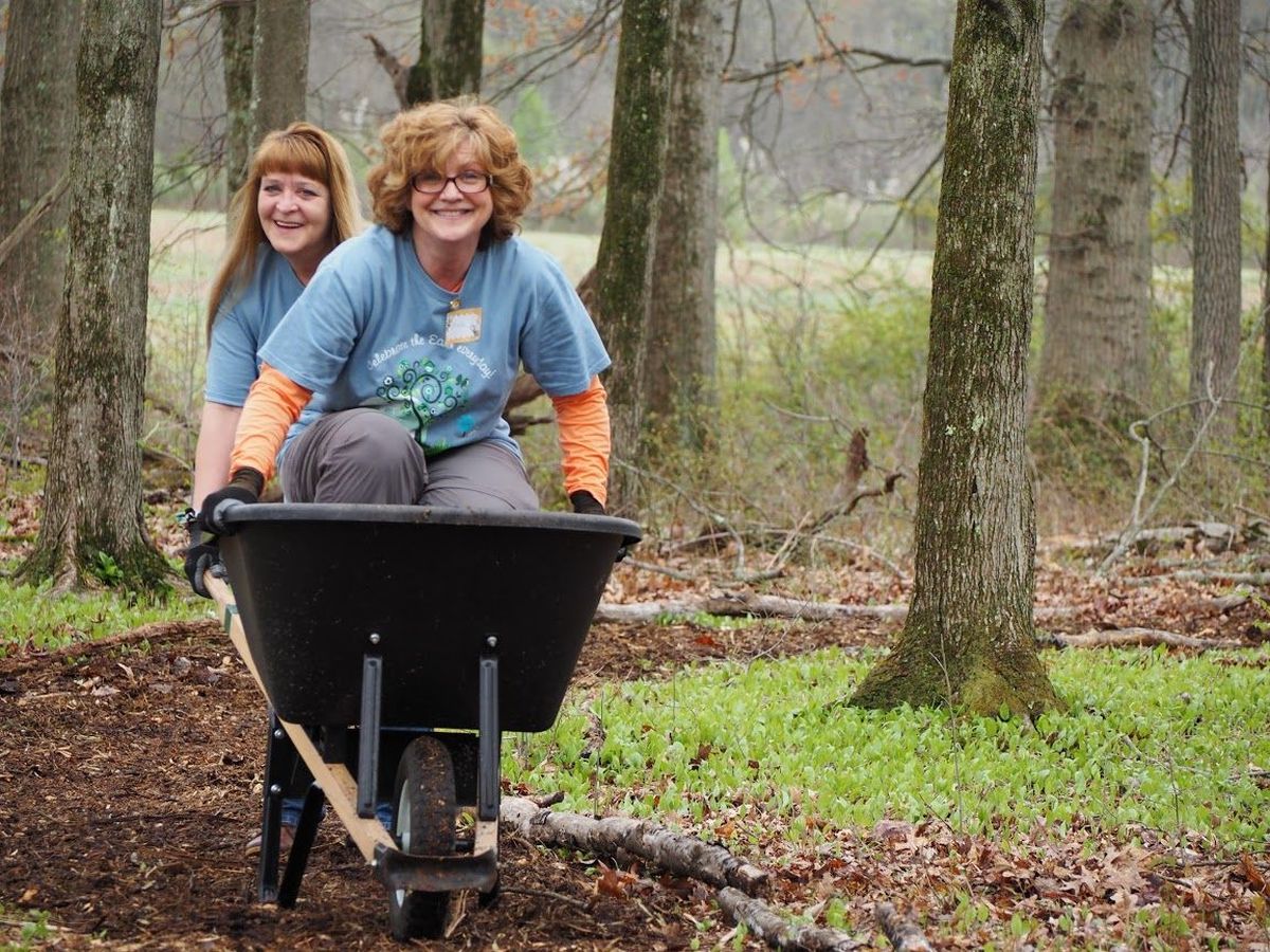 Luann Coen, senior deduction specialist at Brother International, gives a ride to Miroslawa Gehman, senior deductions manager, at Great Swamp National Wildlife Refuge during a volunteer event at the refuge.