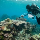 Members of a U.S. Fish and Wildlife Service dive team search the coral reef of Palmyra Atoll National Wildlife Refuge for crown-of-thorns starfish, April 17, 2023.