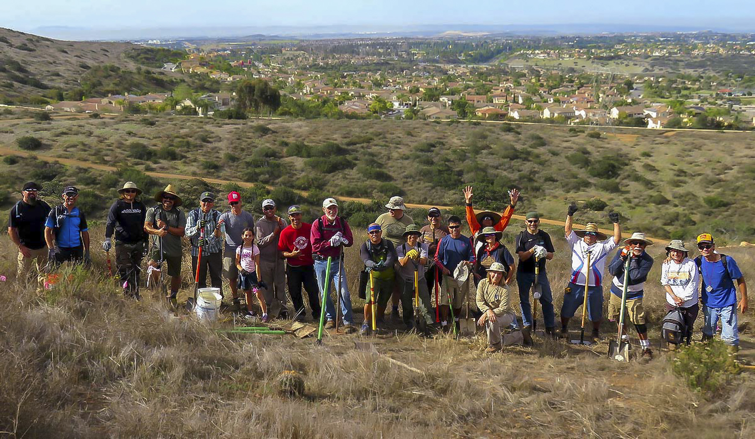 A group of volunteers from Bonita Bikers and the San Diego Mountain Biking Association pose with refuge manager Jill Terp (on one knee) in April 2018. Photo courtesy of Jose Galaz