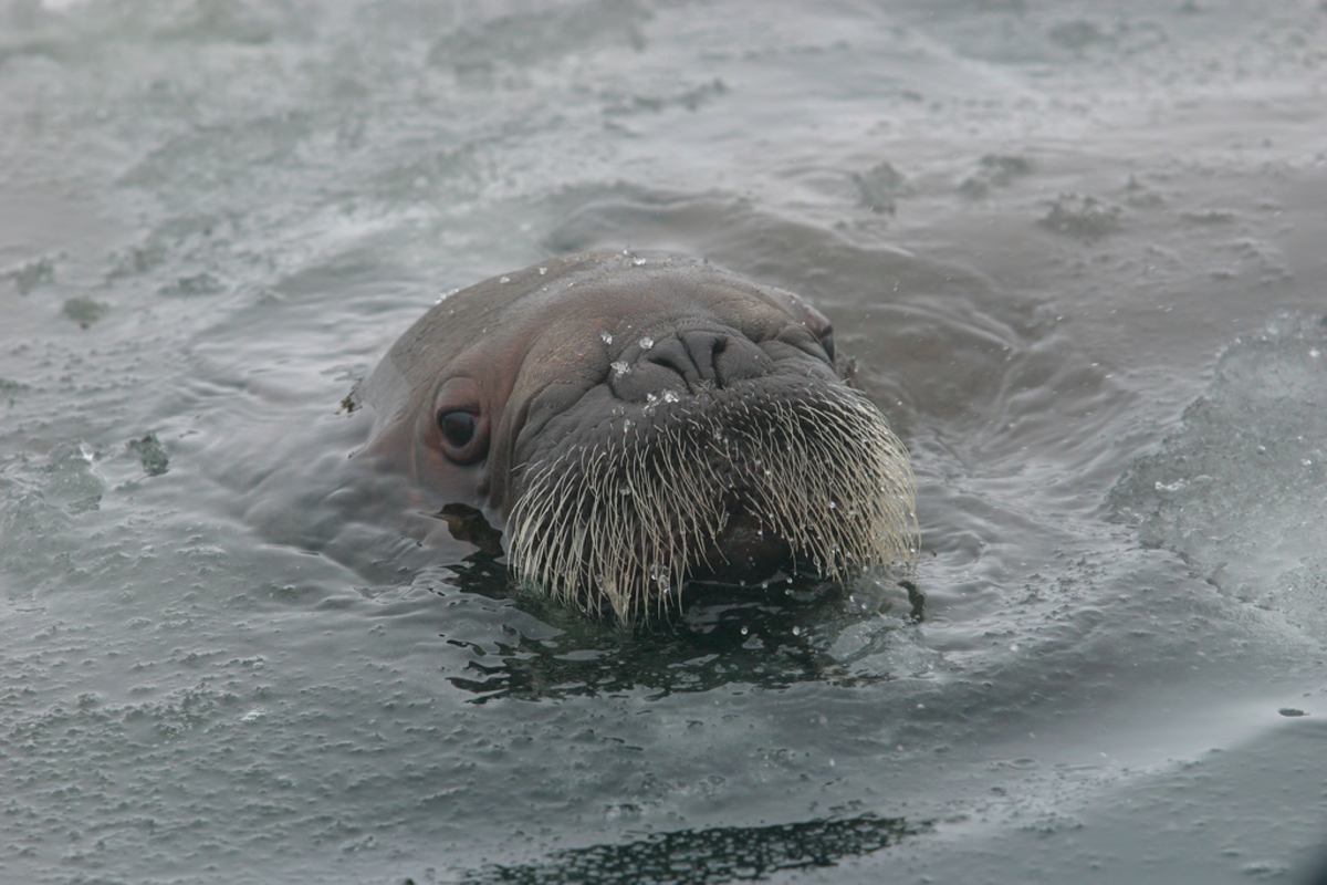 A curious Pacific Walrus calf checks out the photographer from the icy water. Image taken from USFWS Alaska Region Flickr page.