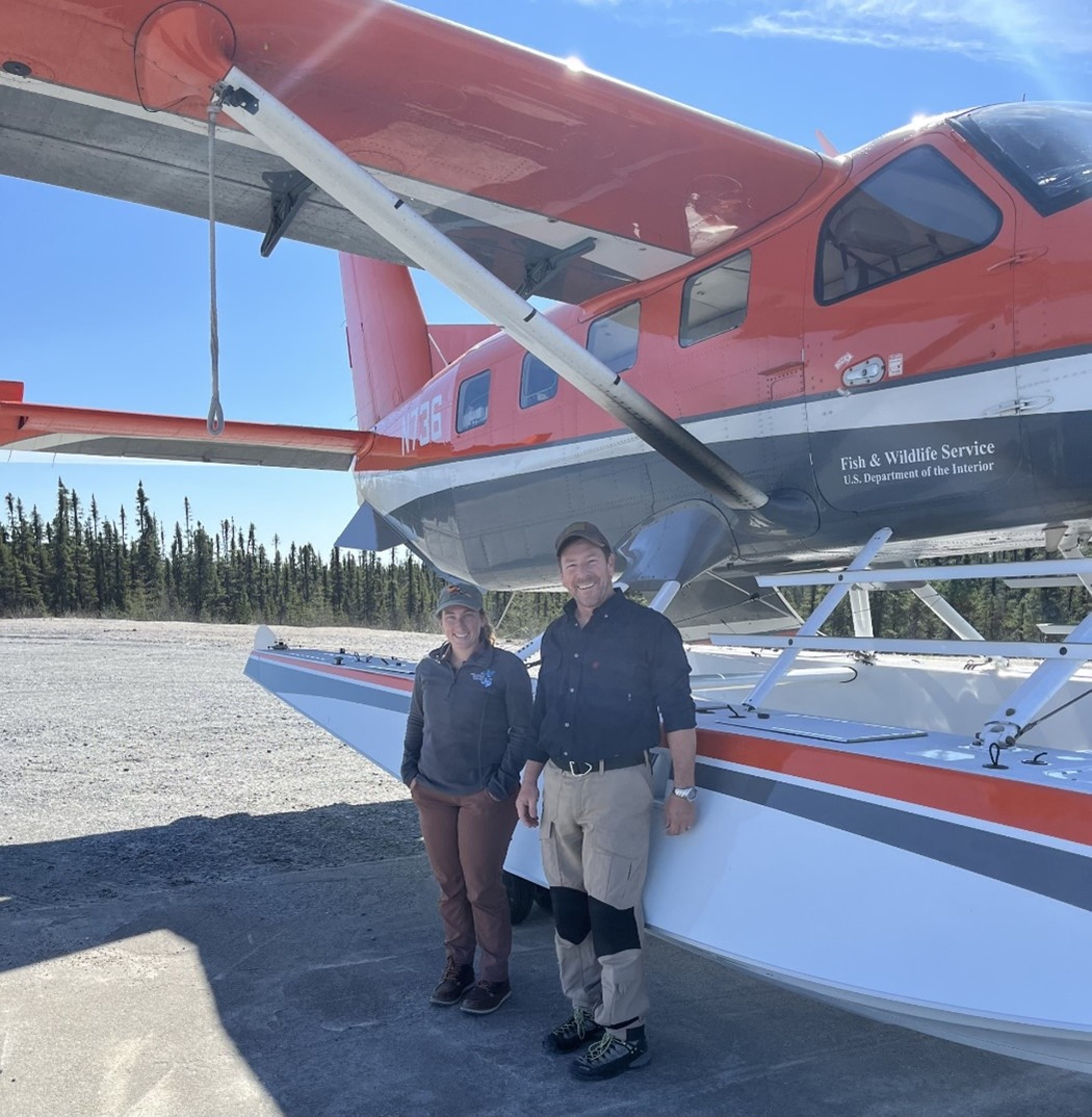 Stephanie Catino (left) and Jim Wortham (right) are the crew for the western Ontario and northern Quebec survey area. Stephanie is a wildlife biologist and Jim is a pilot biologist. This picture was taken during the 2024 Waterfowl Breeding Population and Habitat Survey.